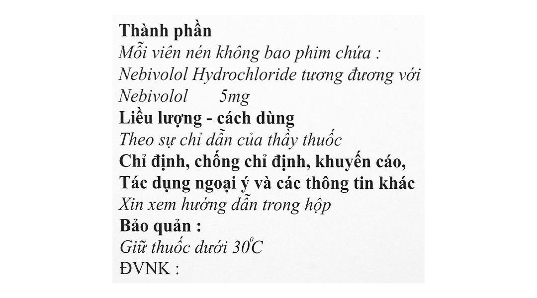 Nebivolol hydrochlorid tương đương với Nebivolol 5mg.