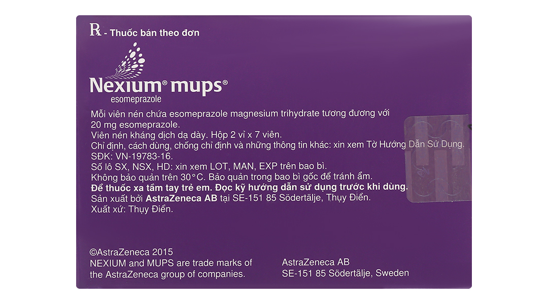 - Chữa có đủ dữ liệu lâm sàng về việc dùng NEXIUM MUPS trên phụ nữ có thai. Khi dùng hỗn hợp đồng phân racemic của omeprazole, dữ liệu trên số lượng lớn phụ nữ có thai có dùng thuốc từ các nghiên cứu dịch tễ chứng tỏ thuốc không gây dị tật hoặc độc tính trên bào thai. Các nghiên cứu về esomeprazole trên động vật không cho thấy thuốc cỏ tác động có hại trực tiếp hay gián tiếp trên sự phát triển của phôi/thai nhi. Các nghiên cứu trên động vật với hỗn hợp racemic cũng không cho thấy có tác động có hại trực tiếp hay gián tiếp trên tình trạng mang thai, sự sinh nở hoặc sự phát triển sau sinh. Nên thận trọng khi kê toa cho phụ nữ có thai.