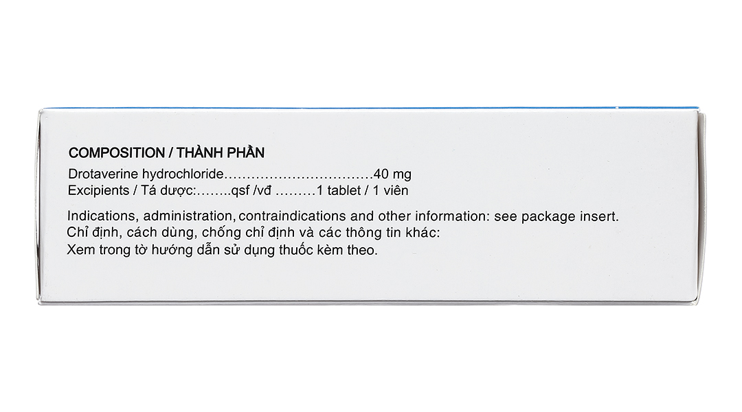 - Hoạt chất: Drotaverine hydrochloride 40mg