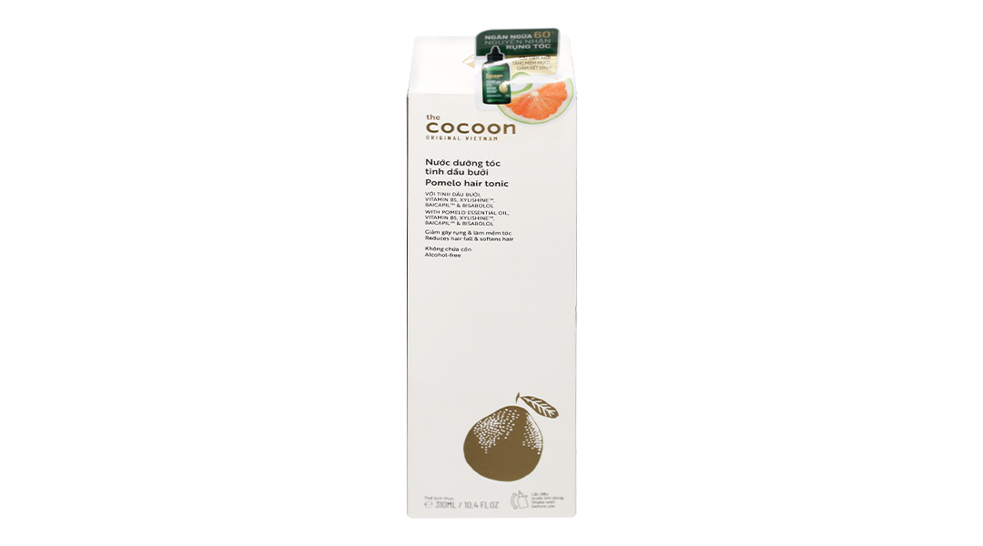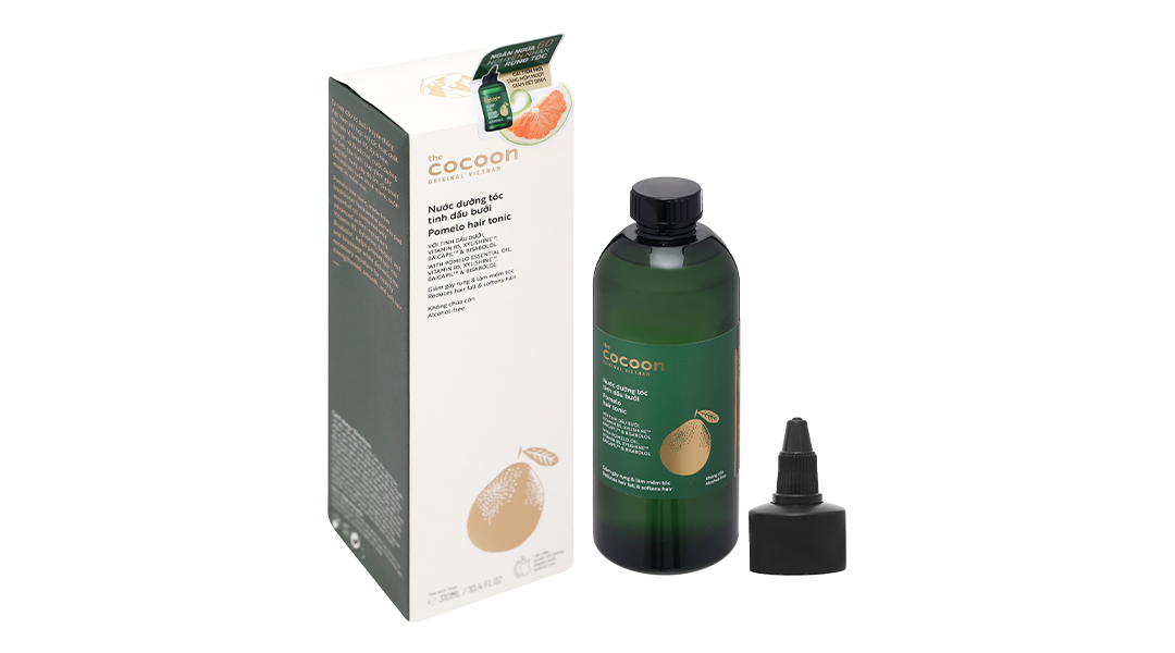 - Với các thành phần tinh dầu vỏ bưởi truyền thống Việt Nam kết hợp với hoạt chất Xylishine, Baicapil, Vitamin B5 và Bisabolol, dưỡng tóc Cocoon giúp cải thiện trình trạng tóc gãy rụng, nuôi dưỡng chân tóc và cung cấp độ ẩm cần thiết cho mái tóc luôn suôn mượt, mềm mại.