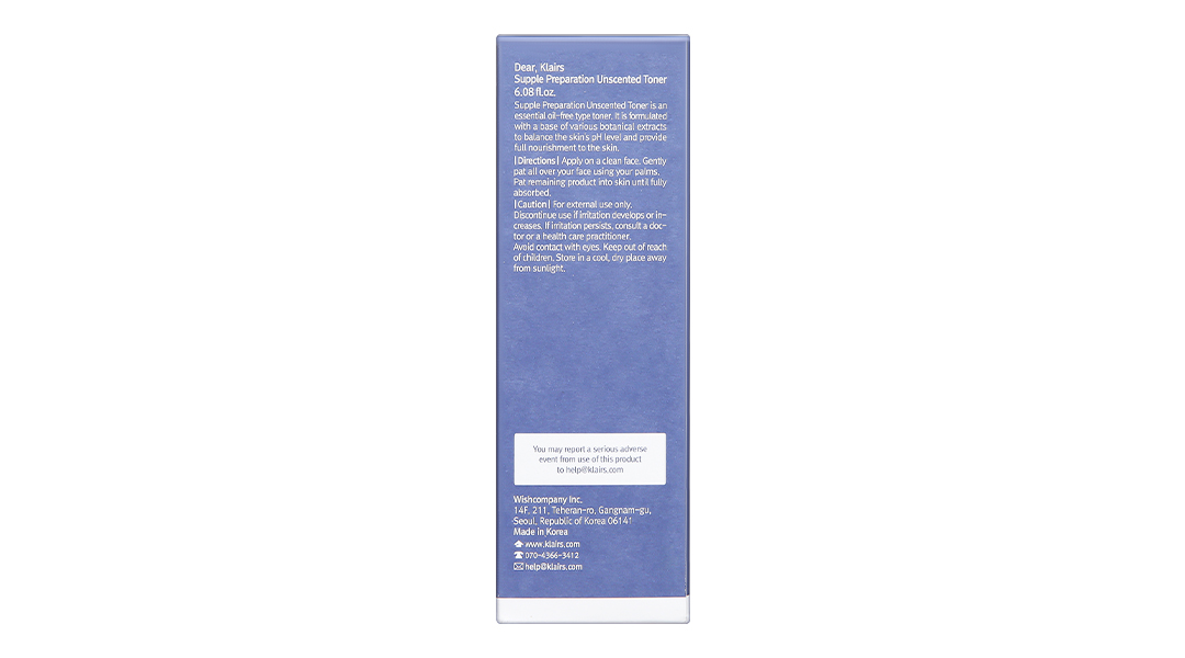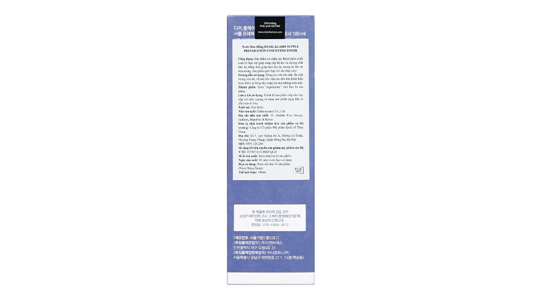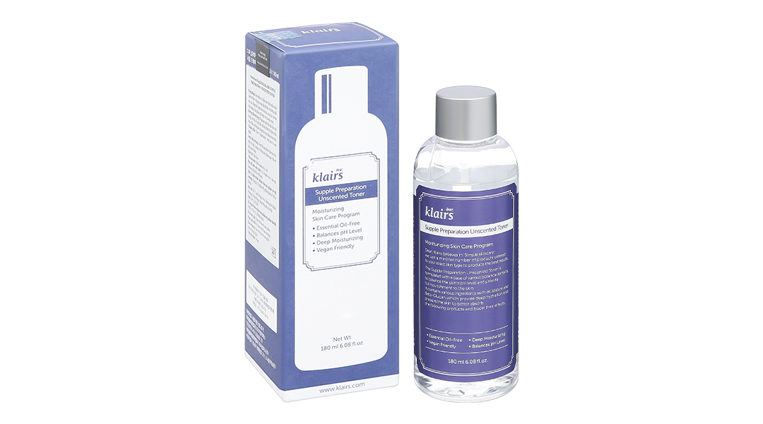 Nước hoa hồng Klairs Supple Preparation Unscented Toner không mùi cấp ẩm cho da chai 180ml