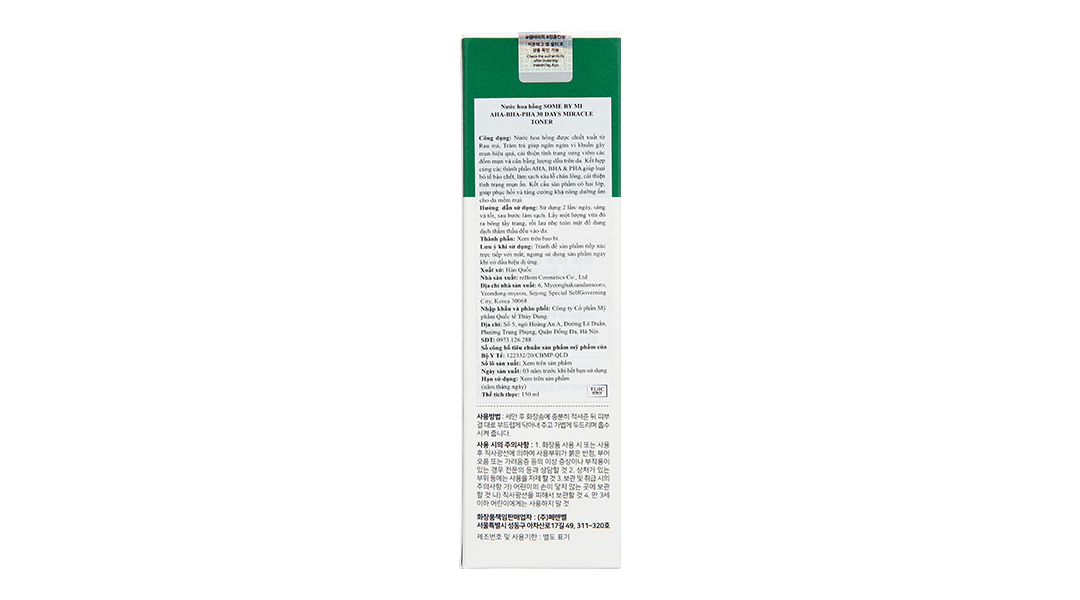 - Nước Hoa Hồng SOME BY MI Cho Da Mụn Miracle Toner AHA- BHA-PHA 30 Days 150ml đến từ SOME BY MI là dòng Toner có chứa phức hợp các loại axit cùng chiết xuất Tràm Trà, giúp làm sạch sâu da, hỗ trợ kháng khuẩn, kháng viêm, ngăn ngừa và làm giảm mụn, đồng thời góp phần thu nhỏ lỗ chân lông, mang lại cho bạn làn da sạch thoáng và mịn màng không tì vết.