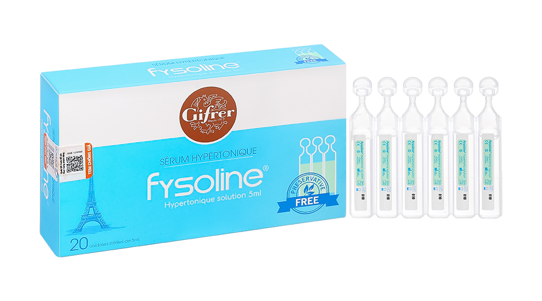 - Fysoline Hypertonic solution không chứa chất bảo quản, dạng ống đơn liều 5ml phù hợp cho trẻ sơ sinh, trẻ nhỏ và người lớn.