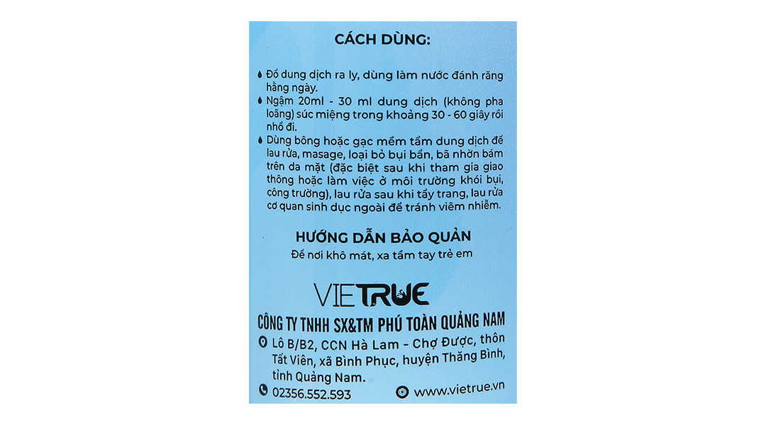 Rửa mặt, mắt, mũi, tai và các vết mẩn ngứa dị ứng. Đặc biệt sau khi tham gia giao thông và làm việc ở môi trường khói, bụi, hóa chất.