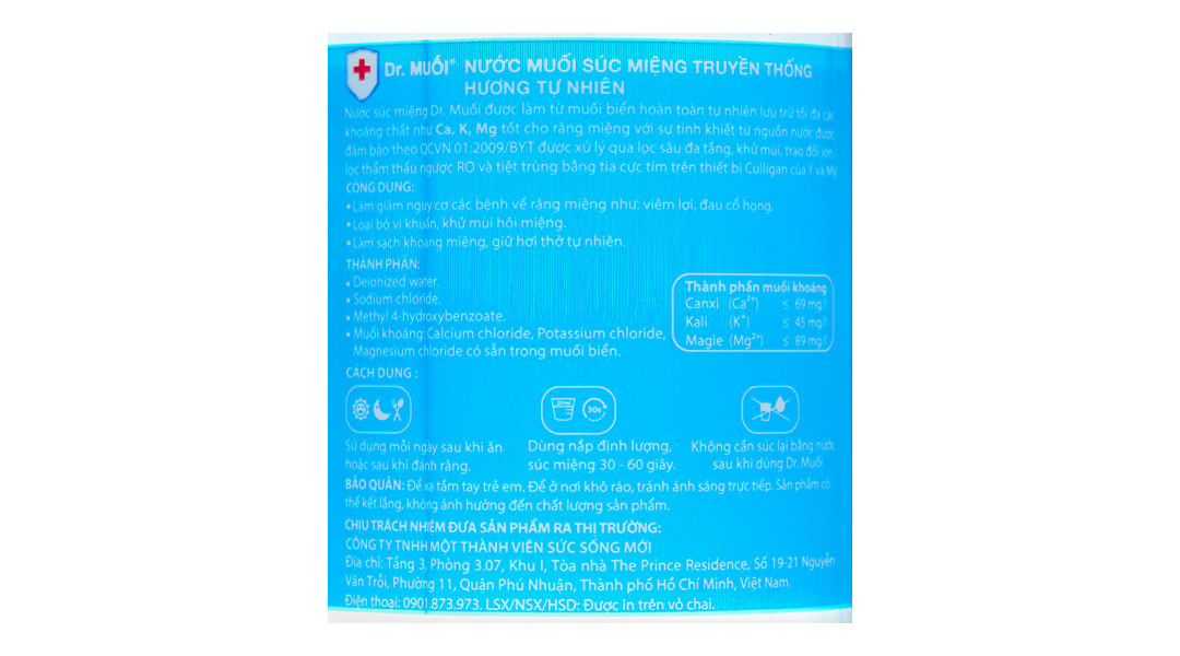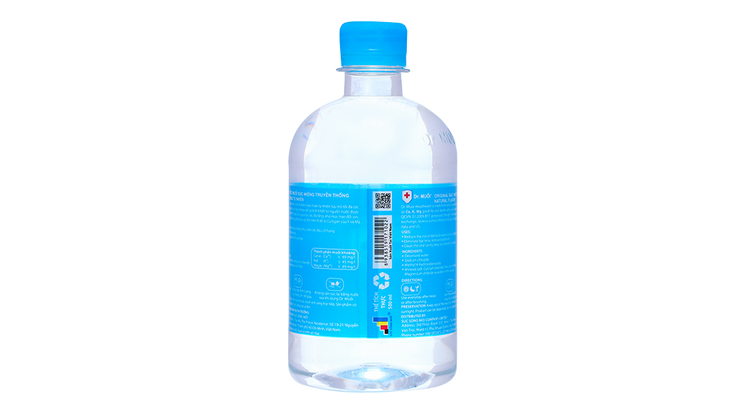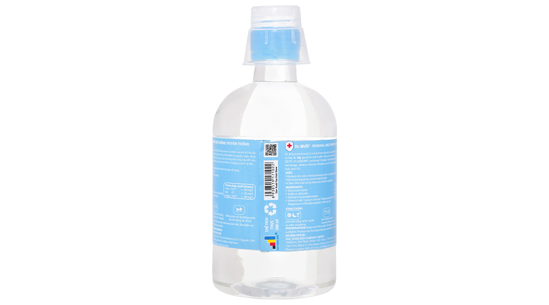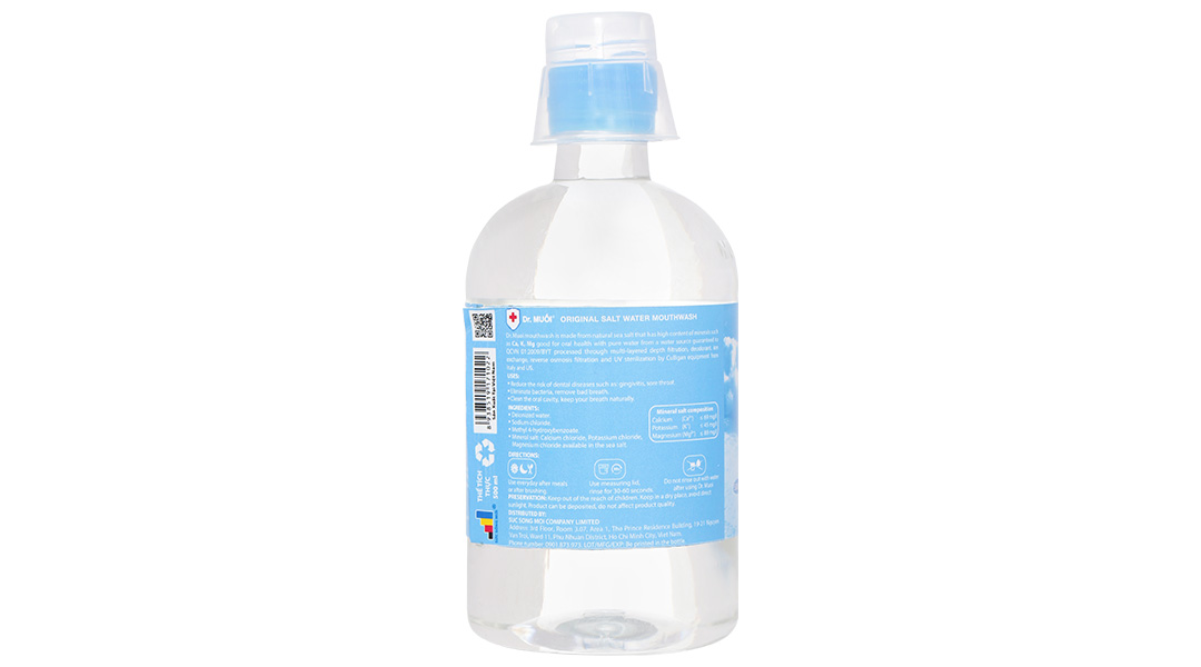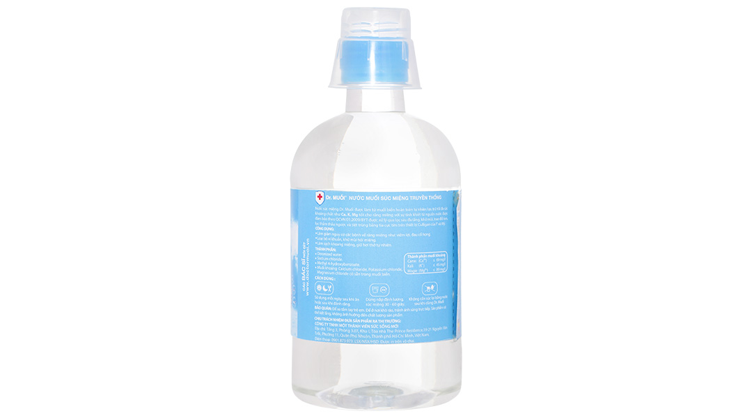 Nước súc miệng Dr. Muối 500ml chứa nước biển tự nhiên giúp làm sạch và bảo vệ sức khỏe, ngăn ngừa sâu răng và hút sạch hiệu quả. Sự tinh khiết của nước từ các mạch nước ngầm rất sâu đã được xử lý qua lọc sâu đa tầng, khử mùi, trao đổi ion, lọc thẩm thấu ngược và tiệt trùng bằng tia cực tím trên thiết bị Culligan của Ý và Mỹ đem đến khả năng làm sạch và khử mùi hôi miệng hiệu quả.