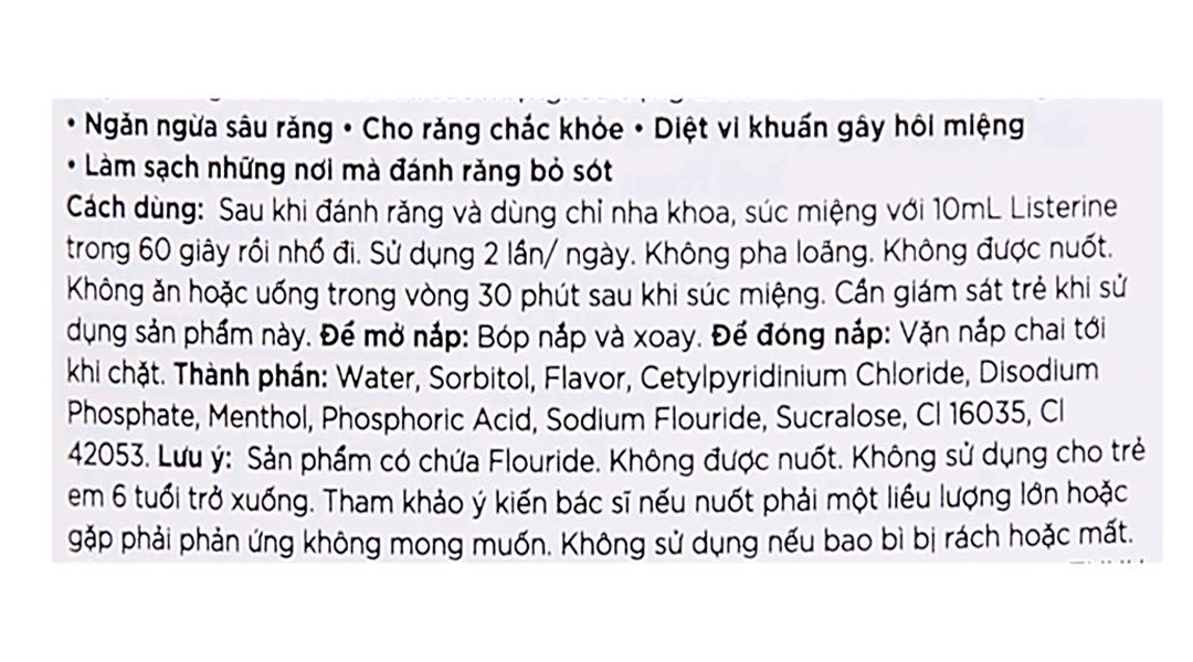 – Sau khi đánh răng, dùng nước súc miệng với 10ml trong 60 giây rồi nhổ đi. Sử dụng 2 lần/ngày.
