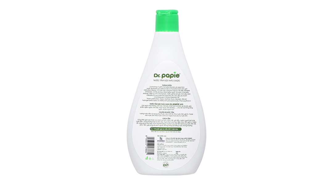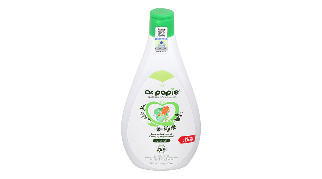 Nước tắm gội thảo dược Dr.Papie với 100% thành phần từ thiên nhiên, chăm sóc da bé dịu nhẹ, an toàn, phòng ngừa rôm sảy, mẩn ngứa.