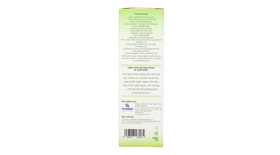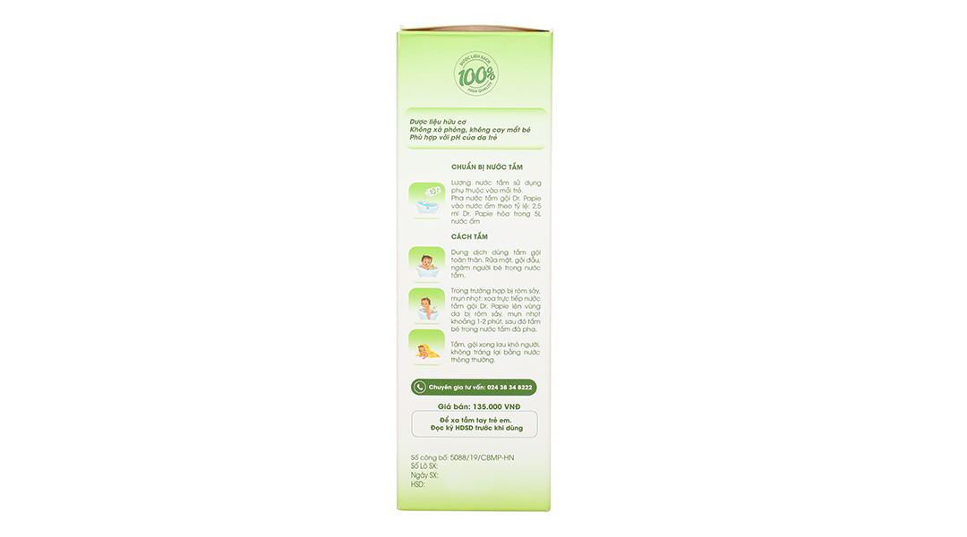 Nước tắm gội thảo dược Dr.Papie 230ml dùng cho trẻ từ 0 – 3 tuổi, trẻ có làn da nhạy cảm.