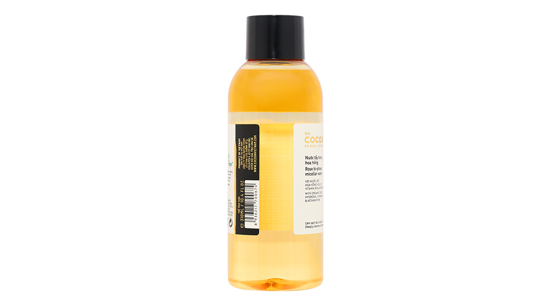 Cùng với đó là nước cất hoa hồng hữu cơ tinh khiết kết hợp công nghệ micellar, nước tẩy trang hoa hồng Cocoon giúp làm sạch sâu lớp trang điểm, bụi bẩn, cấp ẩm và làm dịu, mang lại làn da sạch và mịn màng.