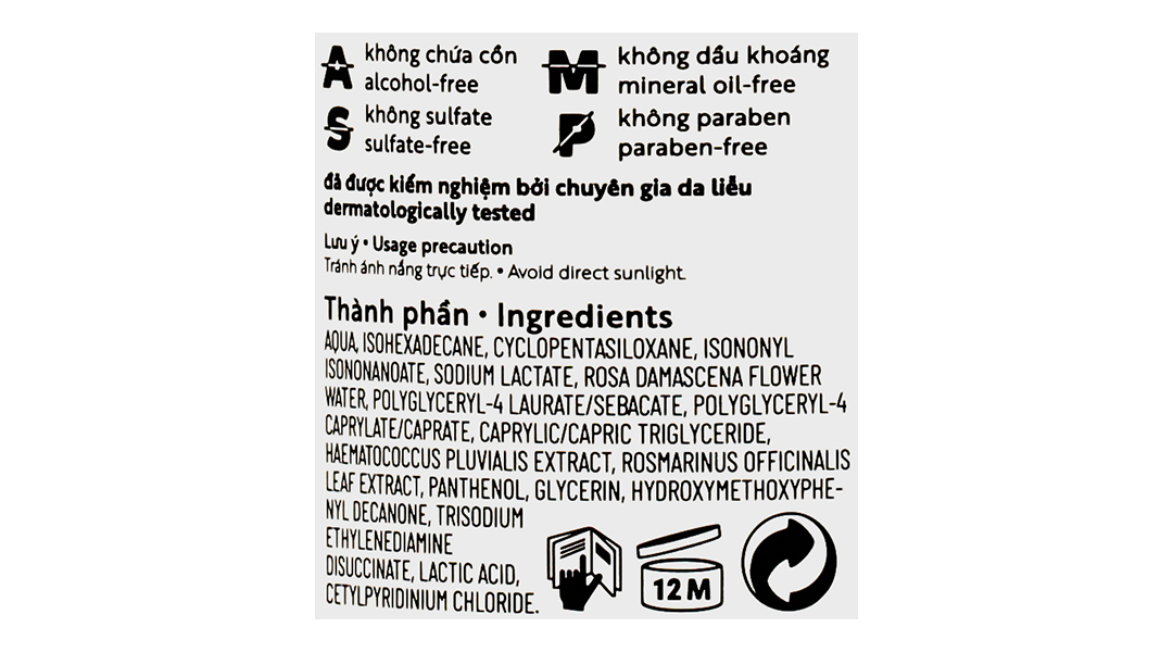 Với công nghệ bi-phase 2 tiên tiến pha kết hợp lớp dầu nhẹ chứa astaxanthin và lớp nước chứa nước cất hoa hồng hữu cơ và tổ hợp chất Natragem S150 độc quyền cùng với pha dầu nhẹ tênh không hề khiến da nhờn rít khó chịu, bít tắc lỗ chân lông, dễ lên mụn.