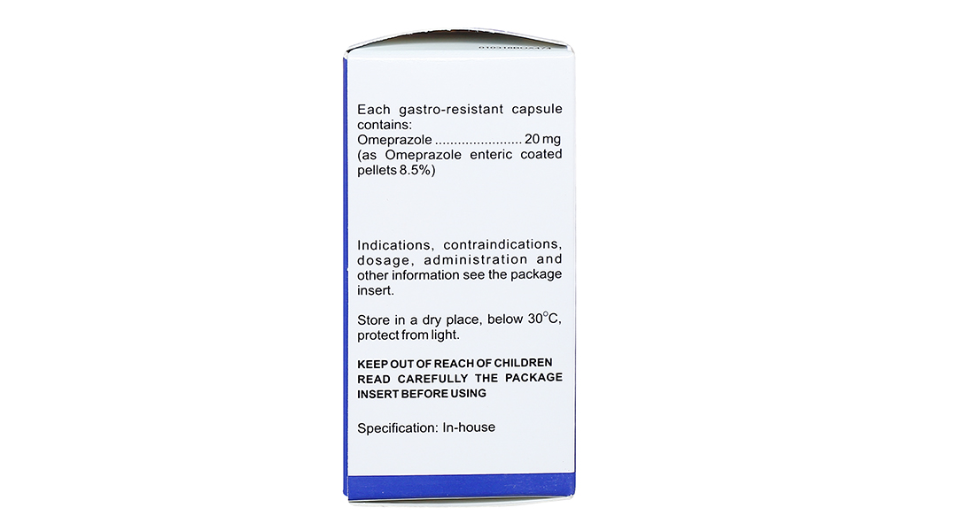 Omeprazol 20mg. (dưới dạng vi hạt bao tan trong ruột omeprazol 8.5%)