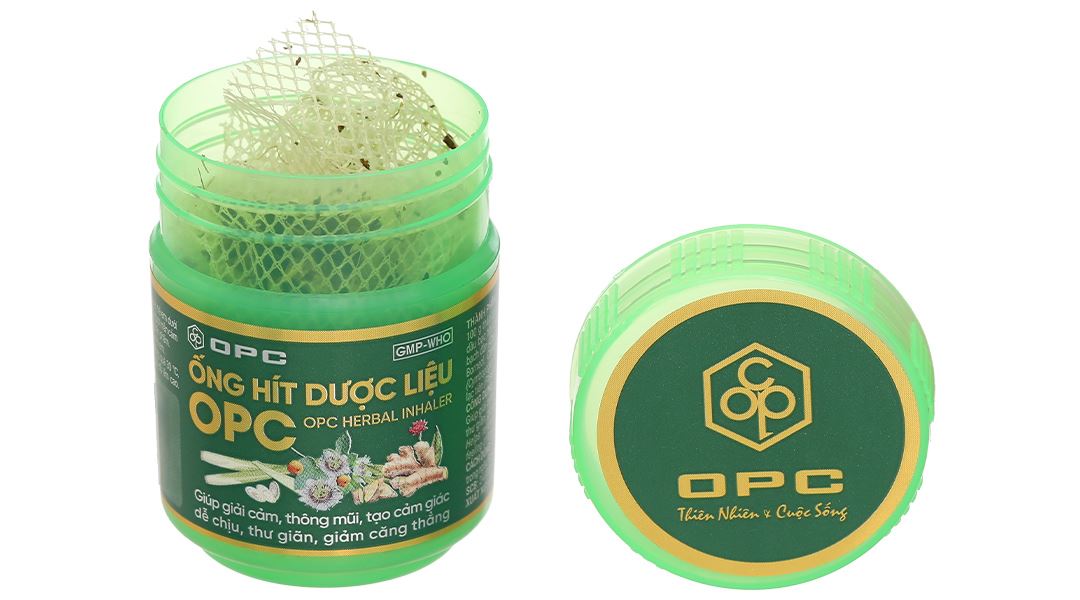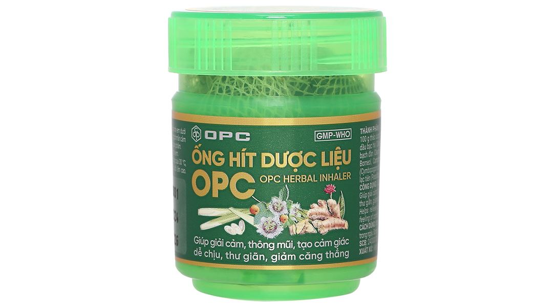 - Ống hít dược liệu OPC là một “người bạn” tuyệt vời không thể thiếu trong túi đồ chăm sóc sức khỏe của bạn, giúp giải cảm, thông mũi và mang đến cảm giác thư giãn tuyệt vời. Điểm đặc biệt của sản phẩm chính là sự kết hợp giữa các tinh dầu tự nhiên mạnh mẽ như bạc hà, bạch đàn, menthol, eucalyptol, borneol và camphor – những thành phần nổi bật không chỉ giúp làm thông thoáng đường hô hấp mà còn giúp giảm ngạt mũi, đau đầu, và tăng cường cảm giác sảng khoái ngay lập tức. Bên cạnh đó, sự bổ sung của các dược liệu như sả, gừng và lạc tiên không chỉ giúp làm dịu cảm giác khó chịu mà còn hỗ trợ tinh thần, giảm căng thẳng và mang lại sự thư giãn cho cơ thể.