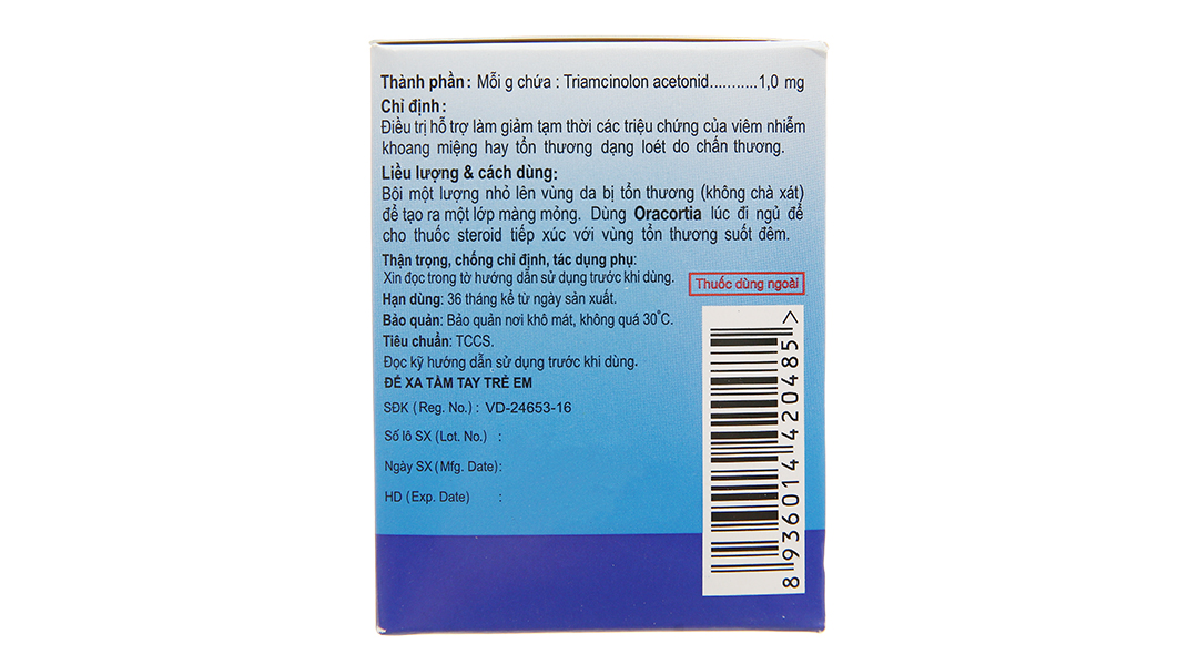 – Hoạt chất: Triamcinolon acetonid 0.10g.
