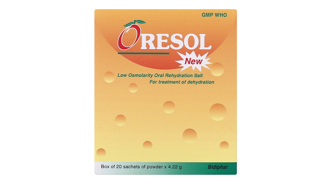 - Triệu chứng: Sử dụng quá liều bao gồm tăng natri – huyết (hoa mắt chóng mặt, tim đập nhanh, tăng huyết áp, cáu gắt, sốt cao), khi uống Oresol đậm đặc và triệu chứng thừa nước (mi mắt húp nặng, phù toàn thân, suy tim).