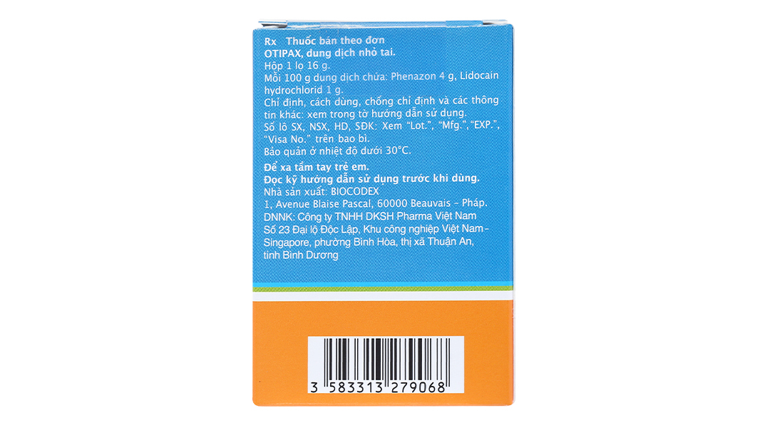 Phân loại: giảm đau tại chỗ/kháng viêm dùng cho tai.
