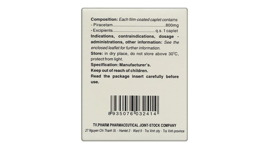 Piracetam dùng theo đường uống được hấp thu nhanh chóng và hầu như hoàn toàn ở ống tiêu hóa. Sinh khả dụng của thuốc gần 100%. Nồng độ đỉnh trong huyết tương (40 – 60 microgram/ml) xuất hiện 30 phút sau khi uống một liều 2 g. Nồng độ đỉnh trong dịch não tủy đạt được sau khi uống thuốc 2 – 8 giờ. Hấp thu thuốc không thay đổi khi điều trị dài ngày. Thể tích phân bố khoảng 0,6 lít/kg. Piracetam ngấm vào tất cả các mô và có thể qua hàng rào máu – não, nhau – thai và cả các màng dùng trong thẩm tích thận. Thuốc có nồng độ cao ở vỏ não, thùy trán, thùy đỉnh và thùy chẩm, tiểu não và các nhân vùng đáy. Thời gian bán thải trong huyết tương là 4 – 5 giờ; thời gian bán thải trong dịch não tủy khoảng 6 – 8 giờ. Piracetam không gắn vào các protein huyết tương và được đào thải qua thận dưới dạng nguyên vẹn. Hệ số thanh thải piracetam của thận ở người bình thường là 86 ml/phút. 30 giờ sau khi uống, hơn 95% thuốc được thải theo nước tiểu. Nếu bị suy thận thì thời gian bán thải tăng lên: Ở người bệnh bị suy thận hoàn toàn và không hồi phục thì thời gian này là 48 – 50 giờ.