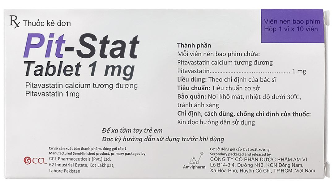 Pit-Stat Tablet 1mg tác dụng giảm cholesterol toàn phần và LDL-C (1 vỉ x 10 viên)
