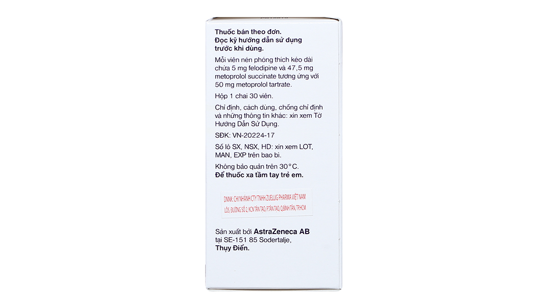 Hoạt chất: 5mg felodipin và 47,5mg metoprolol succinat tương ứng với 50mg metoprolol tartrat.