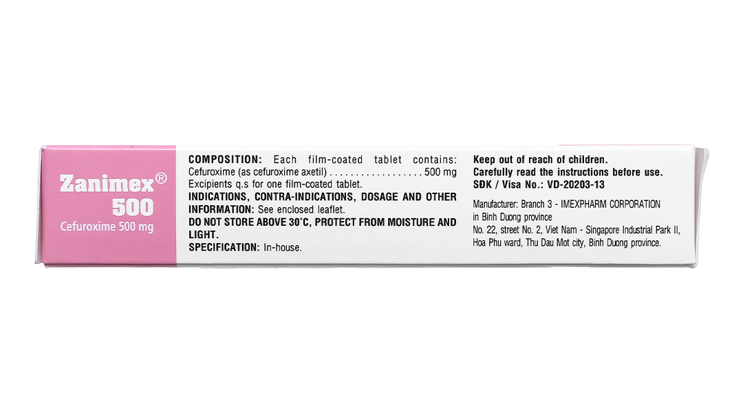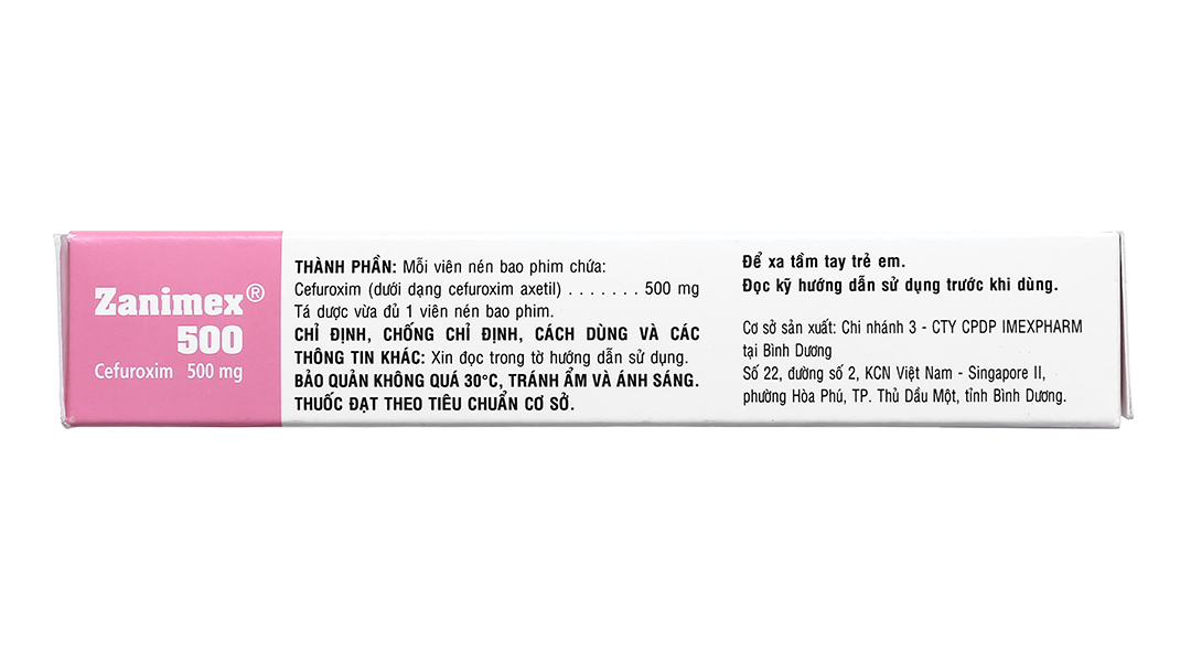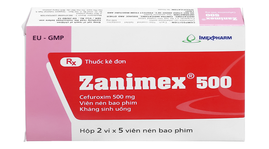 – Thận trọng khi sử dụng– Đã có báo cáo viêm đại tràng giả mạc khi sử dụng kháng sinh phổ rộng vì vậy cần phải quan tâm tới chẩn đoán này trên những người bệnh bị tiêu chảy nặng có liên quan tới việc sử dụng kháng sinh. Nên thận trọng dùng thuốc này đối với những người bệnh đường tiêu hóa đặc biệt là viêm đại tràng. – Điều trị kéo dài với cefuroxim có thể làm tăng sinh vi khuẩn không nhạy cảm. cần theo dõi người bệnh cẩn thận. Nếu bị bội nhiễm nghiêm trọng trong khi điều trị, phải ngừng sử dụng thuốc. – Nên thận trọng khi cho người bệnh dùng đồng thời với các thuốc lợi tiểu mạnh vì có thể có tác dụng bất lợi đến chức năng thận. – Viên nén bao phim Zanimex 500 có hàm lượng cao chưa phù hợp để sử dụng cho trẻ em, nếu cần nên sử dụng viên có hàm lượng thấp hơn. – Thai kỳ và cho con búSử dụng thuốc cho phụ nữ có thai: Chưa có nghiên cứu đầy đủ về việc dùng thuốc đối với phụ nữ mang thai, cần thận trọng khi sử dụng, nên cân nhắc giữa lợi ích đối với người mẹ với sự nguy hiểm cho bào thai. Sử dụng thuốc cho phụ nữ cho con bú: Cefuroxim bài tiết quá sữa mẹ, nên ngừng cho con bú trong thời gian điều trị. – Khả năng lái xe và vận hành máy mócChưa có ghi nhận về tác động của thuốc lên khả năng vận hành máy móc, tàu xe. Tuy nhiên, nên thông báo cho người bệnh những tác dụng không mong muốn như: Khó chịu, nhức đầu khi dùng thuốc. – Tương tác thuốcTương tác của thuốc: – Ranitidin, natri bicarbonat: Làm giảm sinh khả dụng của cefuroxim. Nên dùng cefuroxim cách ít nhất 2 giờ sau thuốc kháng acid hoặc thuốc ức chế thụ thể Histamin H2, vì những thuốc này có thể làm tăng pH dạ dày. – Probenecid liều cao làm giảm độ thanh thải cefuroxim ở thận, làm cho nồng độ cefuroxim trong huyết tương cao hơn và kéo dài hơn. – Aminoglycosid hoặc các thuốc lợi tiểu mạnh: Làm tăng khả năng gây nhiễm độc thận. – Cefuroxim có thể ảnh hưởng đến hệ vi khuẩn ở ruột, làm giảm tái hấp thu estrogen. Do đó, thuốc có thể làm giảm tác dụng của các thuốc tránh thai đường uống có chứa estrogen và progesterone. Tương kỵ của thuốc: Do chưa có các nghiên cứu về tính tương kỵ của thuốc, không trộn lẫn thuốc này với các thuốc khác. |