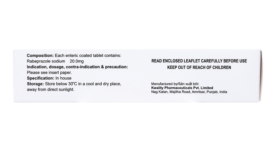 Mỗi viên bao tan ở ruột có chứa: Rabeprazole sodium 20mg