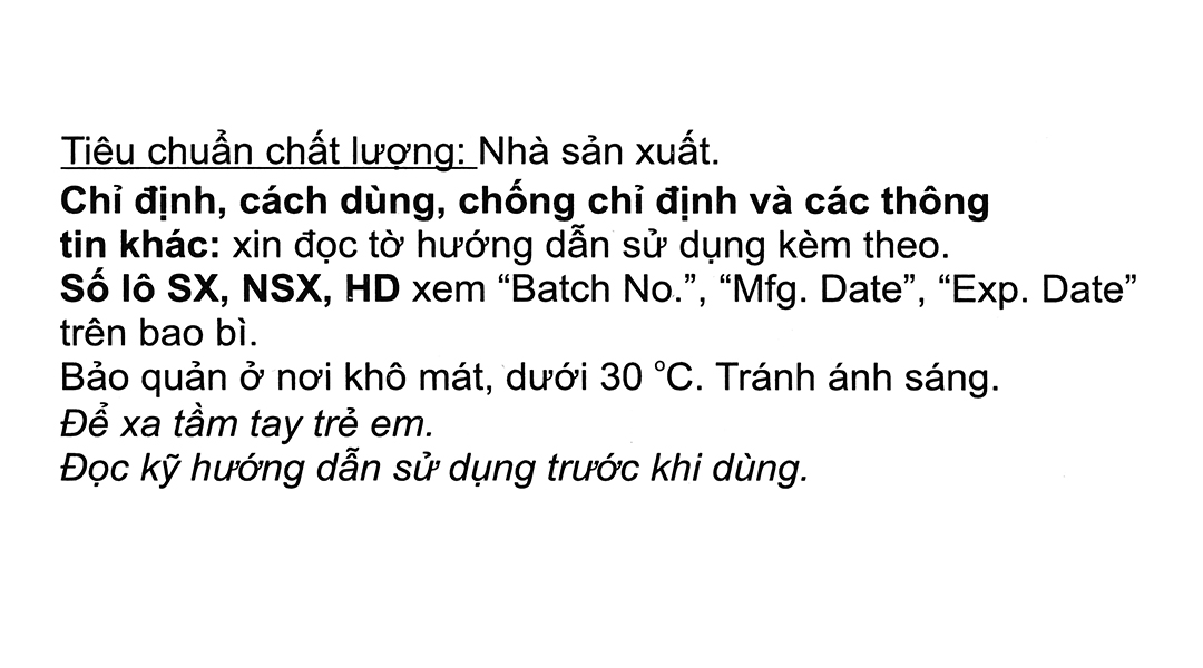 Mọi thông tin dưới đây đã được Dược sĩ biên soạn lại. Tuy nhiên, nội dung hoàn toàn giữ nguyên dựa trên tờ Hướng dẫn sử dụng, chỉ thay đổi về mặt hình thức. |