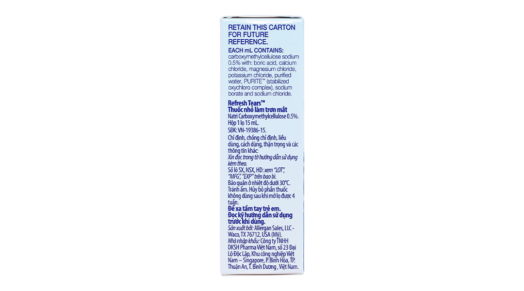 - Hoạt chất: Natri carboxymethylcellulose 0.5%.