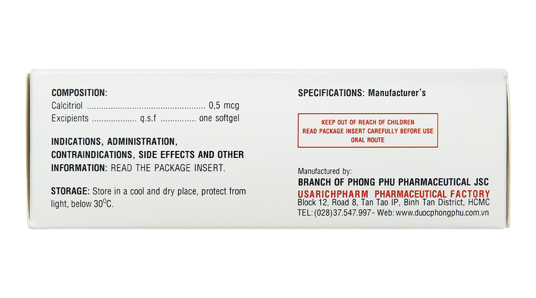 Hai giờ sau khi uống liều duy nhất 0,5mcg calcitriol, các nồng độ trung bình trong huyết thanh của calcitriol tăng từ 40,0 ± 4,4 pg/ml đến 60,0 ± 4,4 pg/ml, và giảm còn 53,0 ± 6,9 pg/ml sau 4 giờ, 50 ± 7,0 pg/ml sau 8 giờ, 44 ± 4,6 pg/ml sau 12 giờ và 41,5 ± 5,1 pg/ml sau 24 giờ Calcitriol và các chất chuyển hóa khác của vitamin D liên kết với những protein chuyên biệt của huyết tương trong quá trình vận chuyển trong máu.