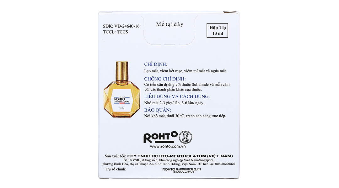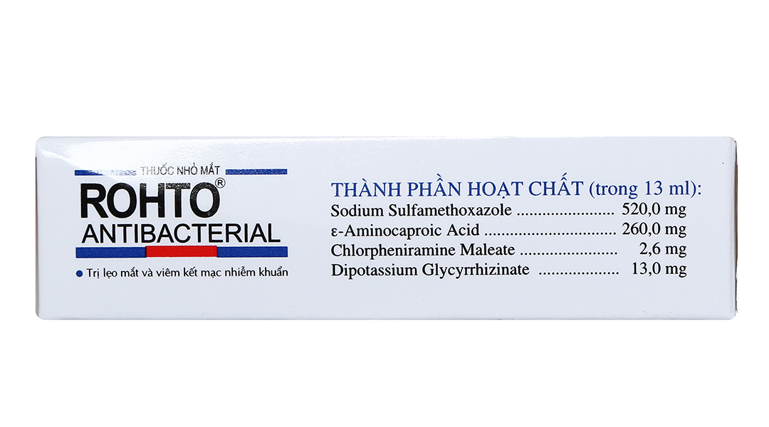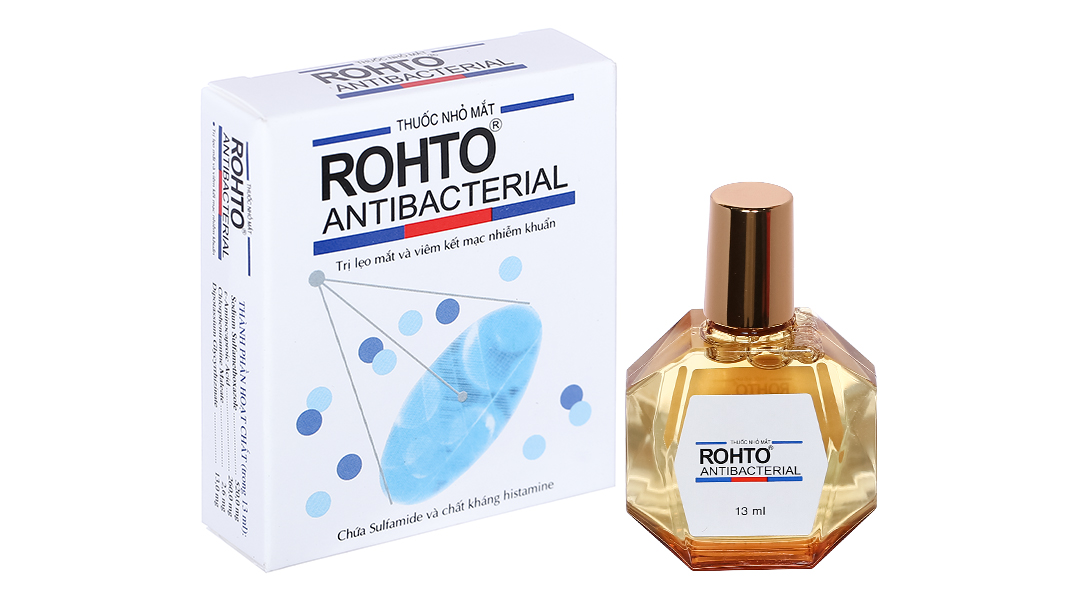 Thuốc nhỏ mắt Rohto Antibacterial chỉ định điều trị lẹo mắt, viêm kết mạc, viêm mi mắt và ngứa mắt.