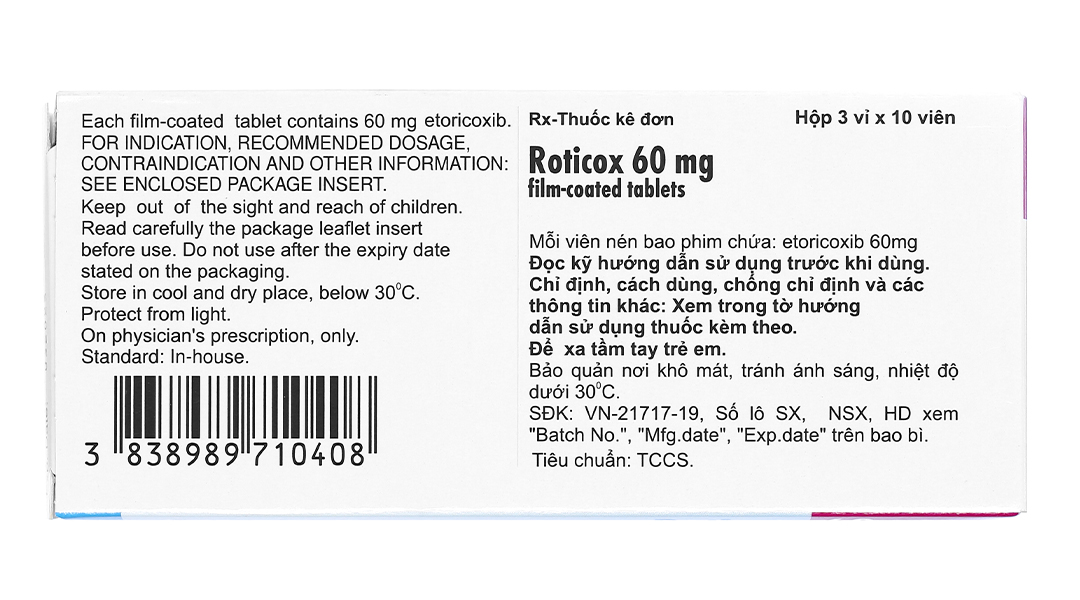 Mỗi viên nén bao phim chứa 60mg Etoricoxib