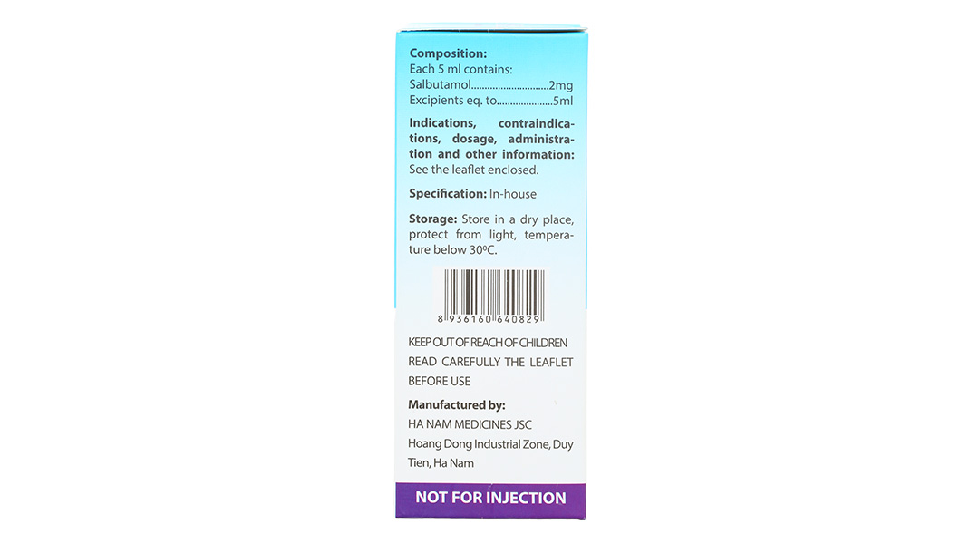 - Thành phần hoạt chất: Salbutamol (dưới dạng salbutamol sulfat) 2mg.