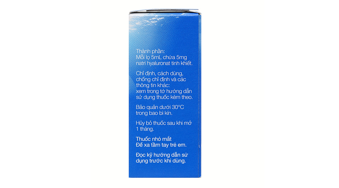 - Hoạt chất: Mỗi lọ 5ml natri hyaluronate tinh khiết.