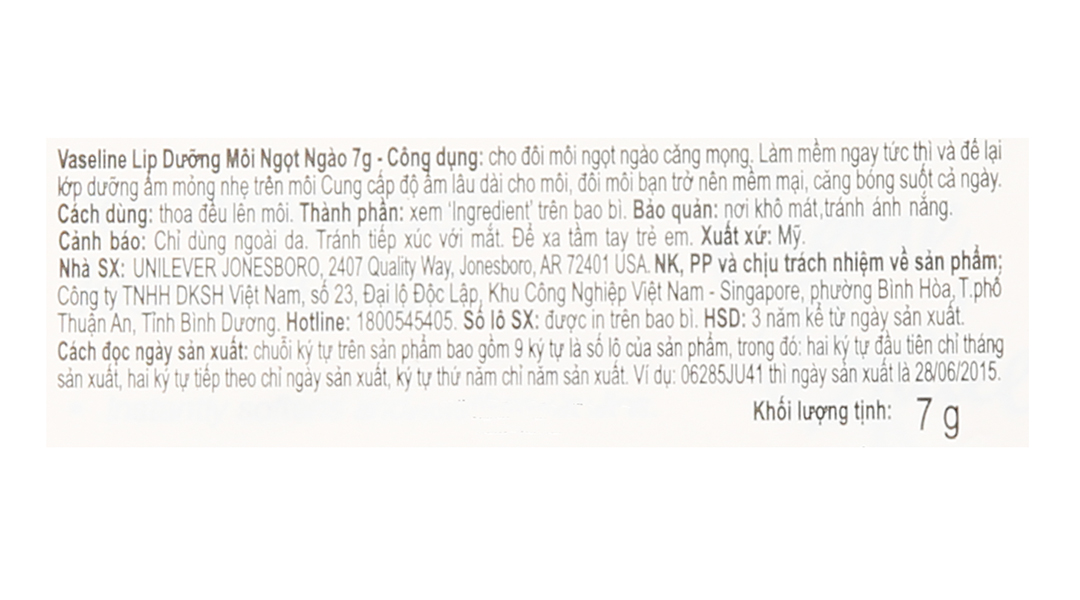Son dưỡng môi Vaseline Lip Therapy 7g giúp bảo vệ môi khỏi những tác động của thời tiết và hoạt động như một chất hàn gắn các tế bào da môi, ngăn cản sự mất nước dẫn đến khô môi, giúp tái tạo da từ bên trong, chống khô môi, trị nứt nẻ môi, giúp giảm nẻ môi và giảm bong tróc môi.