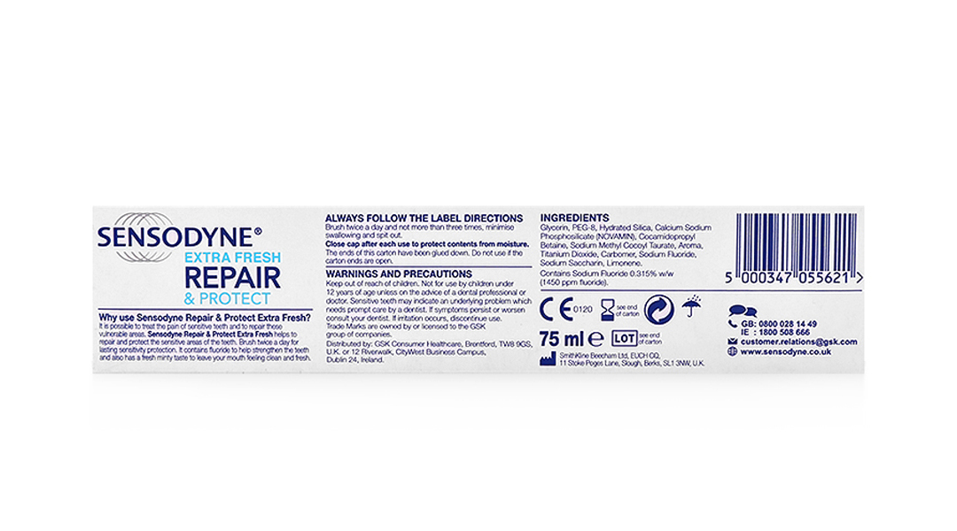 - Với 2 lần sử dụng mỗi ngày, kem đánh răng Sensodyne Repair & Protect Deep Repair Whitening đã được thử nghiệm chứng minh hiệu quả trong việc giúp phục hồi sâu và giảm ê buốt giúp bạn tận hưởng cuộc sống mà không lo răng ê buốt.
