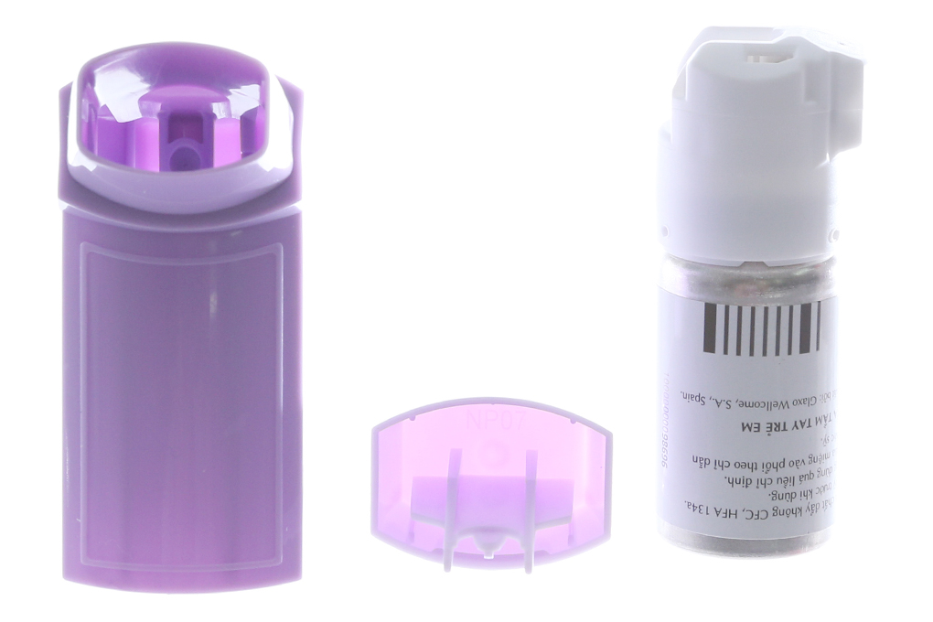 7. Trong khi nín thở, lấy bình xịt ra khỏi miệng và thả lỏng ngón tay đặt trên phần đỉnh của bình xịt. Tiếp tục nín thở cho đến khi còn cảm thấy dễ chịu.