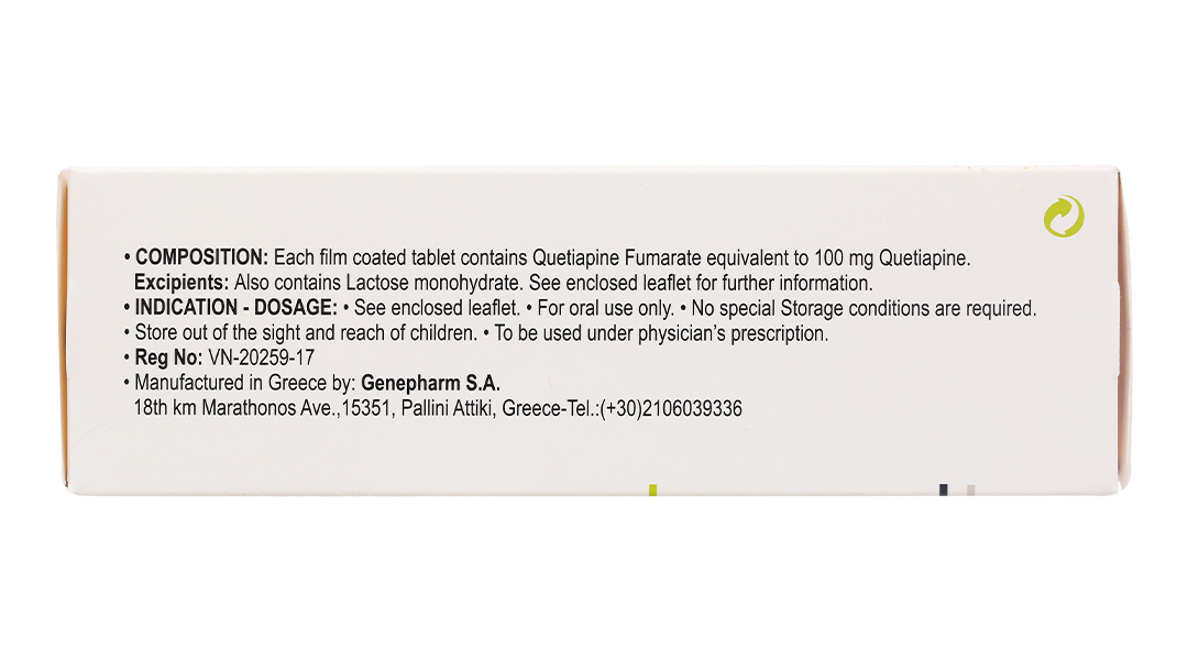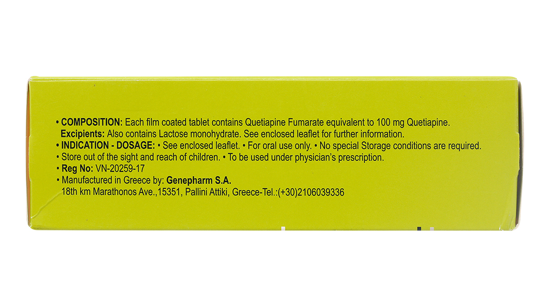 Quetiapine fumarate 115,13mg tương đương quetiapine 100mg.