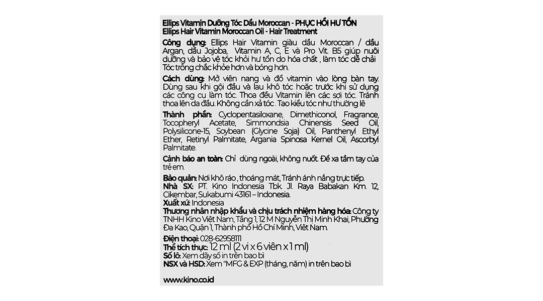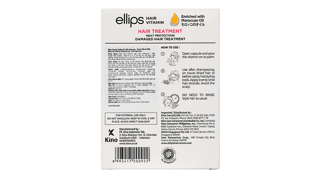 Ellips Hair Vitamin giàu dầu Moroccan/dầu Argan, dầu Jojoba, Vitamin A, C, E và Pro Vit B5 giúp nuôi dưỡng và bảo vệ tóc khỏi hư tổn do hóa chất, làm tóc dễ chải.