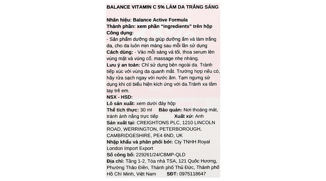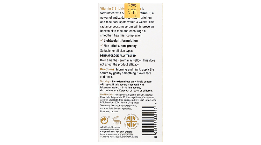 Balance Active Formula Vitamin C Brightening Serum là sản phẩm tinh chất dưỡng da đến từ thương hiệu Balance Active Formula – Anh với những đặc trưng nổi bật như sau:
