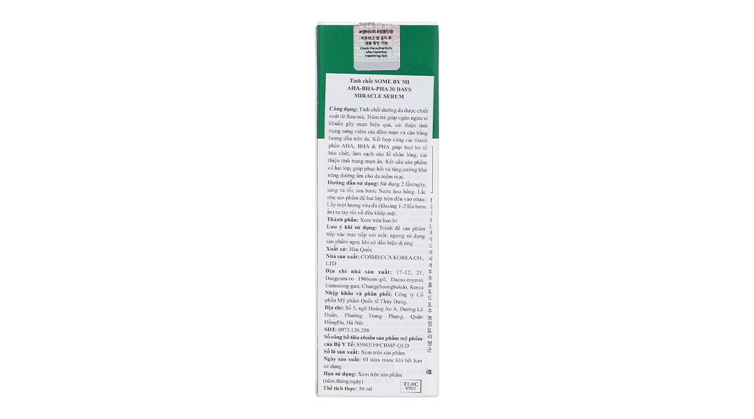 Tinh chất dưỡng da được chiết xuất từ Rau má, Tràm trà giúp ngăn ngừa vi khuẩn gây mụn hiệu quả, cải thiện tình trạng sưng viêm các đốm mụn và cân bằng lượng dầu trên da. Kết hợp cùng các thành phần AHA, BHA & PHA giúp loại bỏ tế bào chết, làm sạch sâu lỗ chân lông, cải thiện tình trạng mụn ẩn. Kết cấu sản phẩm có hai lớp, giúp phục hồi và tăng cường khả năng dưỡng ẩm cho da mềm mại.