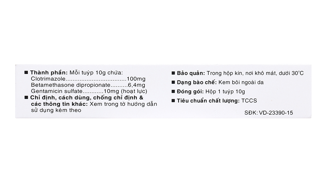 Hoạt chấtBetamethasone dipropionate, Gentamicin sulfate, Clotrimazole