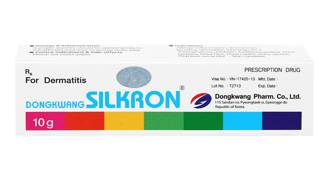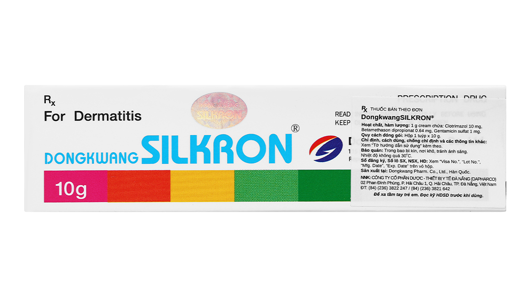 - DongkwangSilkron chứa betamethason dipropionat, một glucocorticoid thể hiện rõ đặc tính chung của corticosteroid; clotrimazol là một chất kháng nấm nhóm imidazol; gentamicin sulfat là một kháng sinh nhóm aminoglycosid.