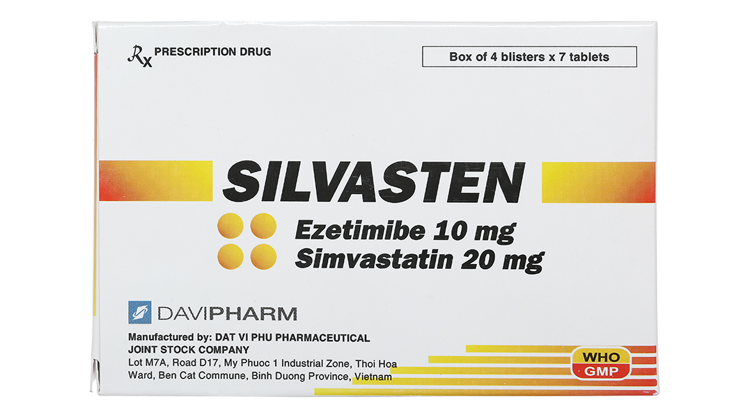 Viên SILVASTEN là dạng viên kết hợp chứa simvastatin 20 mg/ezetimibe 10mg, được sử dụng để thay thế viên simvastatin 20mg và ezetimibe 10mg riêng lẻ hoặc được dùng để phổi hợp thêm ezetimibe khi điều trị bằng simvastatin 20mg không đạt được mục tiêu điều trị. SILVASTEN không thích hợp với chỉ định điều trị với liều lượng khác.