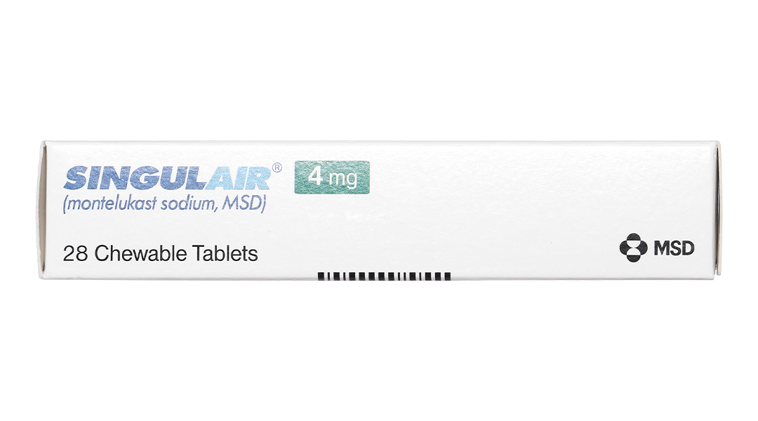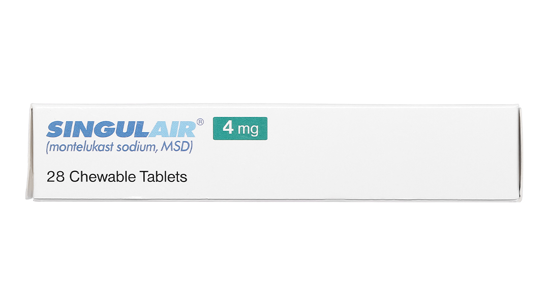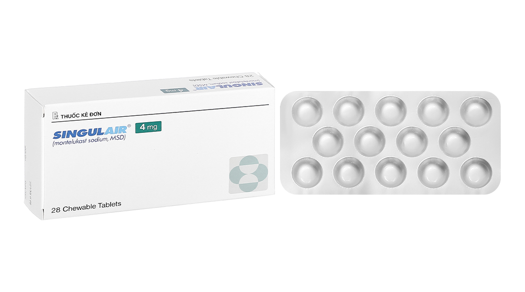 + Singulair 4mg, dạng cốm uống sẵn có như một sản phẩm thay thế cho bệnh nhân từ 2 tuổi – 5 tuổi.