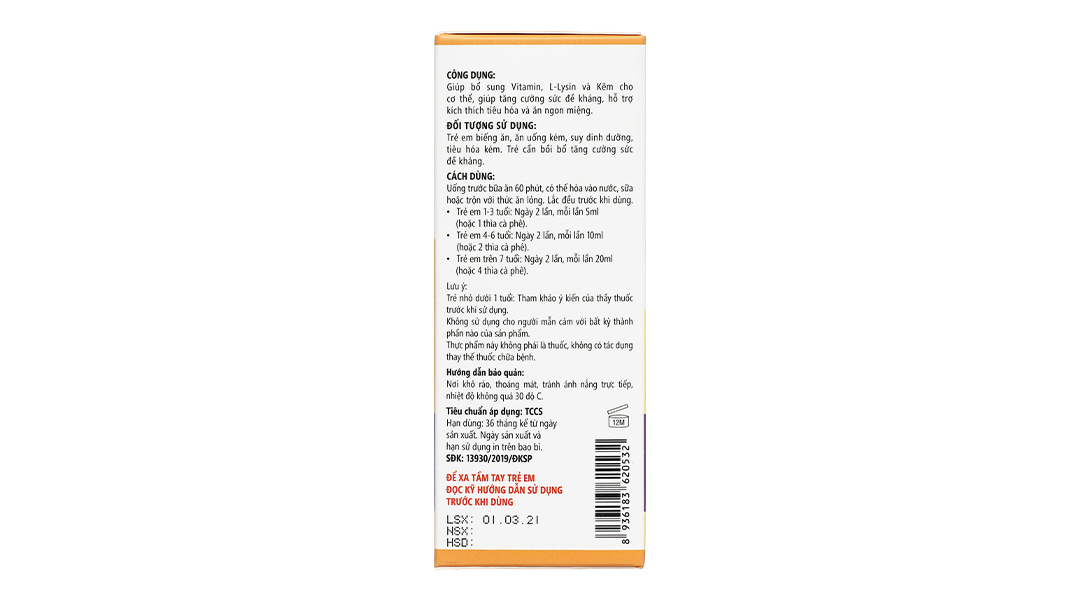 Giúp bổ sung vitamin, L-Lysin và kẽm cho cơ thể, giúp tăng cường sức đề kháng, hỗ trợ kích thích tiêu hóa và ăn ngon miệng.