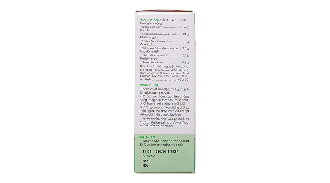 - Hỗ trợ làm giảm các triệu chứng nóng trong như rôm sảy, mụn nhọt, phát ban, nhiệt miệng, nhiệt lưới.