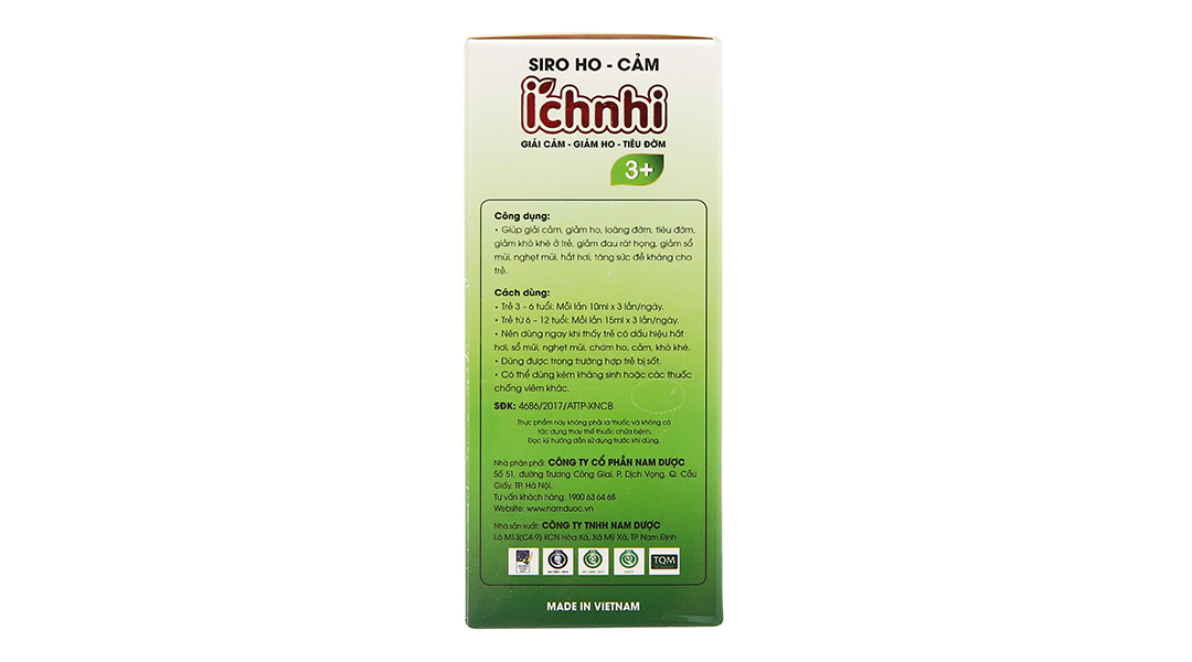 Siro ho cảm Ích Nhi 3+ hỗ trợ giảm ho, tăng đề kháng chai 90ml