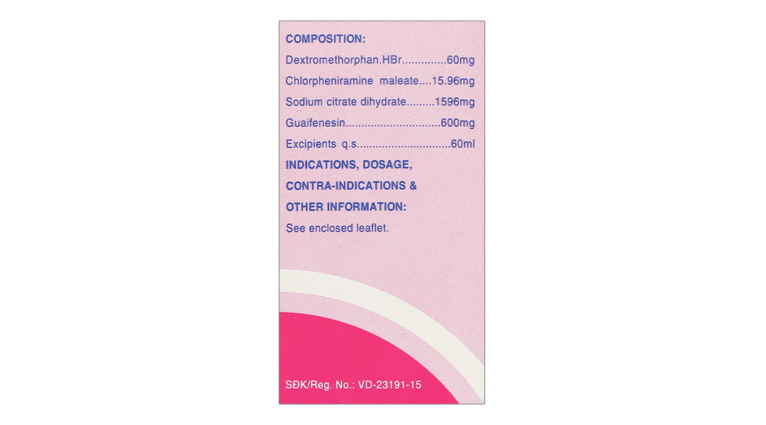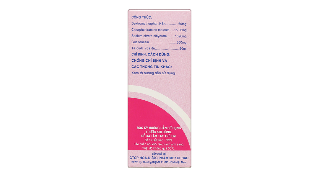 Tá dược vừa đủ 60ml: ammonium chloride, đường trắng, potassium sorbate, tinh dầu dâu, màu đỏ amaranth, nước tinh khiết.