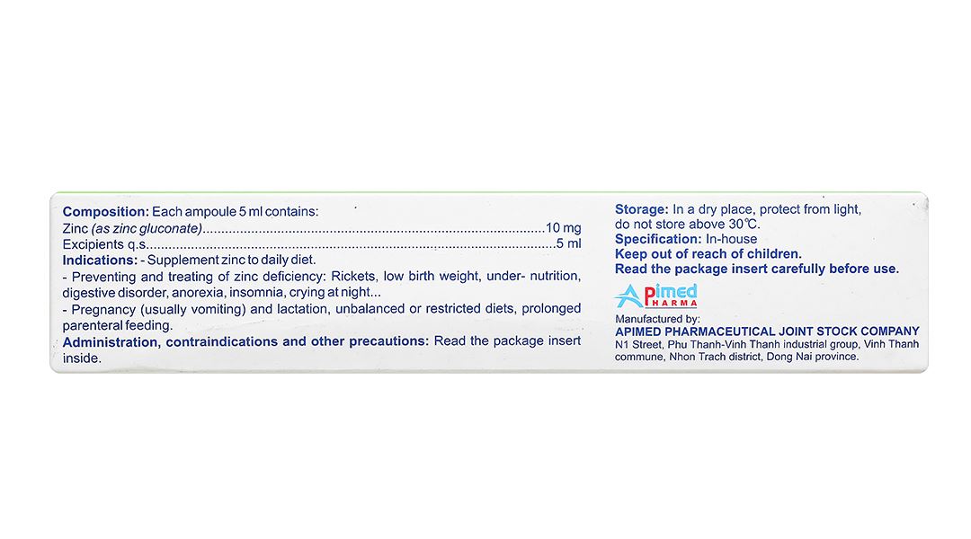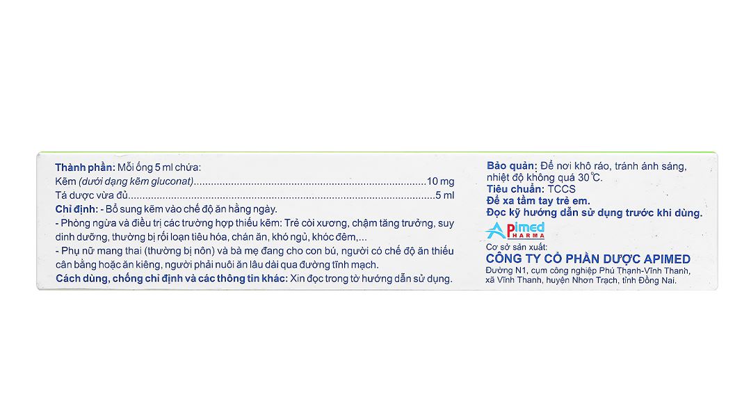 - Thành phần dược chất: Kēm 10 mg (Dưới dạng kẽm gluconat).