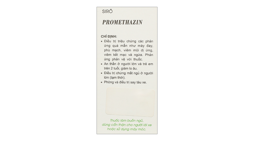 – Thai kỳ và cho con búSử dụng thuốc cho phụ nữ có thai: Chưa xác định được tính an toàn khi sử dụng thuốc trong thời kỳ mang thai. Chỉ nên dùng khi lợi ích điều trị xác đáng hơn nguy cơ có thể xảy ra cho thai nhi. Sử dụng thuốc cho phụ nữ cho con bú: Thận trọng khi dùng thuốc vì nguy cơ tác dụng không mong muốn (như kích động hoặc kích thích khác thường) có thể xảy ra ở đứa trẻ. Vì vậy nên ngừng cho con bú nếu người mẹ dùng promethazine. Thuốc có thể ức chế tiết sữa do tác dụng kháng cholinergic. – Khả năng lái xe và vận hành máy mócVì promethazine gây buồn ngủ nên tránh dùng thuốc khi đang lái xe hoặc vận hành máy móc. – Tương tác thuốcTương tác của thuốc: