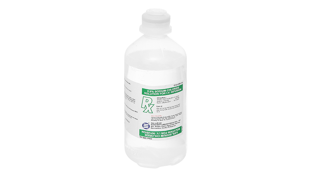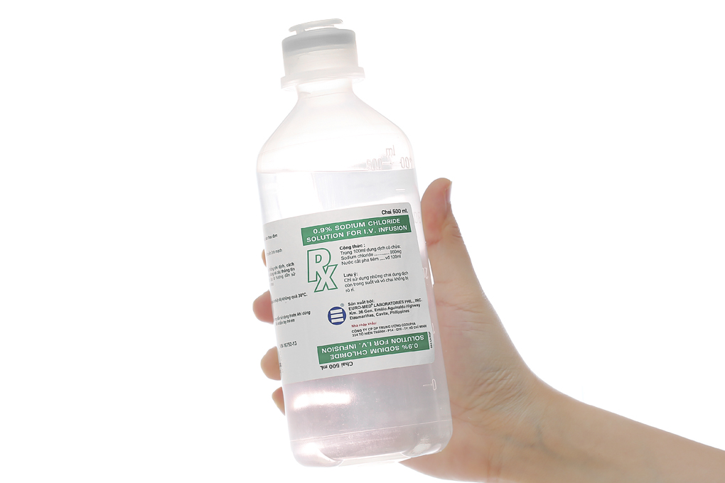 Dịch truyền 0.9% Sodium Chloride Solution Euro-Med bổ sung muối, nước chai 500ml