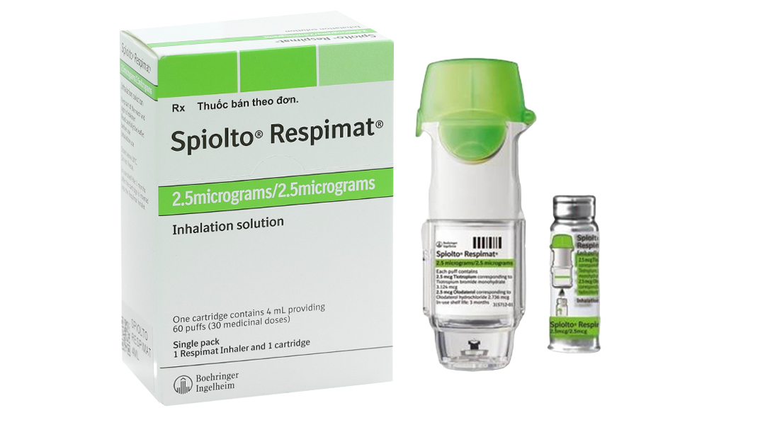 Tiotropium, một thuốc kháng muscarinic tác dụng kéo dài, và olodaterol, một thuốc chủ vận beta2-adrenergic tác dụng kéo dài, được phối hợp trong bình xịt hạt mịn SPIOLTO RESPIMAT. Hai hoạt chất này hiệp đồng tác dụng giãn phế quản do chúng có cơ chế tác dụng khác nhau và vị trí đích tác dụng trên phổi khác nhau.